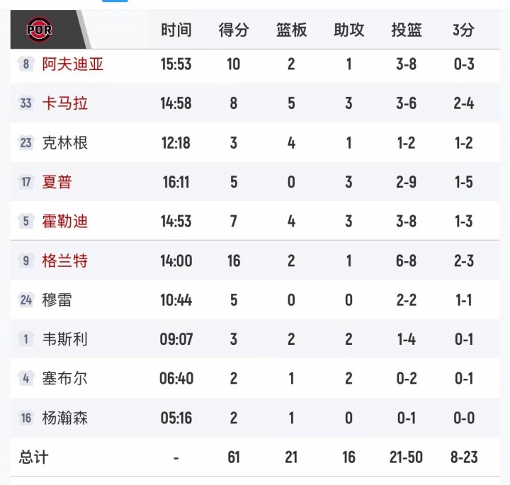 開拓者半場61-57森林狼!楊瀚森2分1板 華子18分5板!