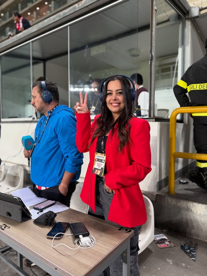 拉里薩-里克爾梅現(xiàn)年40歲,在INS擁有226萬粉絲。南美世預(yù)賽收官戰(zhàn),她現(xiàn)場評(píng)述巴拉圭1-0客勝秘魯?shù)谋荣?,上演解說首秀。