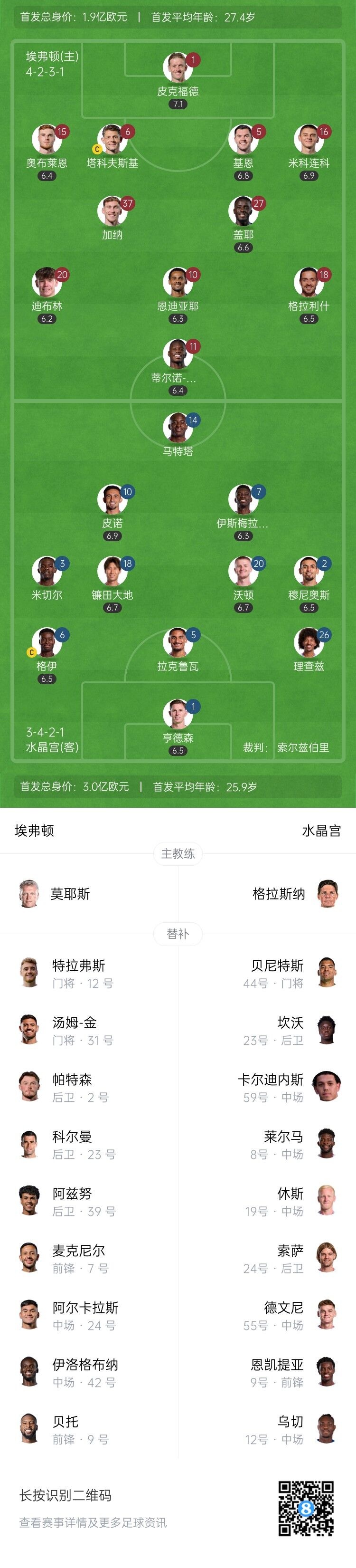 傷停補(bǔ)時2分鐘。上半場比賽結(jié)束,埃弗頓0-1水晶宮。